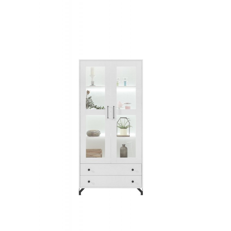 Witryna BERGEN 2 firmy Meblar przeznaczona jest do umeblowania pokoju dziennego w nowoczesnym stylu. Witryna wykonana została w białej kolorystyce. Witryna została wykonana z dużą starannością, o czym świadczą metalowe uchwyty oraz nóżki, zapewniając jej trwałość.
