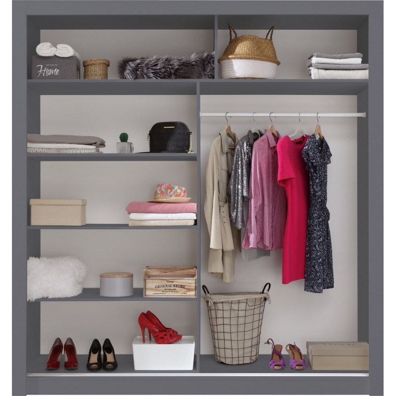 Szafa DUCA II 200 idealnie wkomponuje się w każde przestrzenie, a dzięki posiadanym lustrom, optycznie powiększy pomieszczenie w którym sie znajduje.