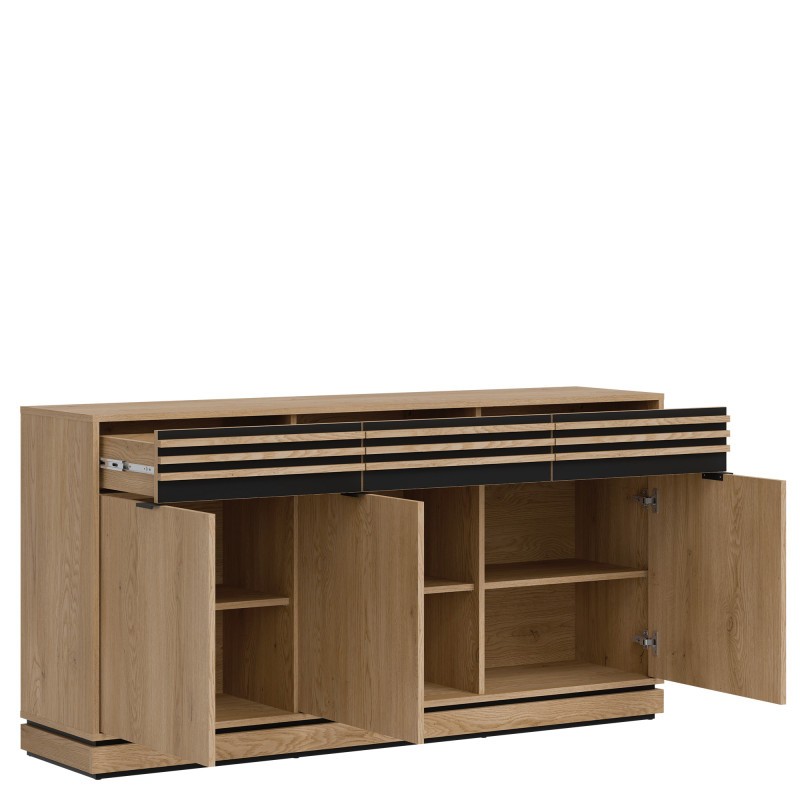 Kolekcja Ferro firmy Liveo Meble to połączenie surowego charakteru stylu industrialnego z funkcjonalnością dopasowaną do współczesnych wnętrz. Inspirowana loftowym minimalizmem, wyróżnia się prostą formą, wyrazistymi liniami i harmonijnym zestawieniem materiałów. Ciepłe odcienie naturalnego drewna zostały zestawione z elementami metalu w matowej czerni, co tworzy elegancki kontrast i nadaje meblom nowoczesny wygląd. Meble z kolekcji Ferro sprawdzą się zarówno w salonie, jadalni, jak i domowym biurze. Praktyczne rozwiązania, takie jak pojemne szafki, funkcjonalne regały czy solidne stoły, łączą estetykę z wygodą użytkowania. To propozycja dla osób, które cenią ponadczasowy design, wysoką jakość wykonania i wnętrza z charakterem.