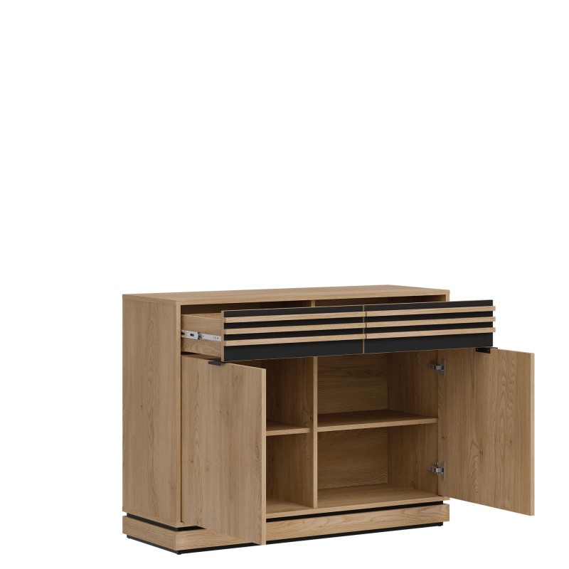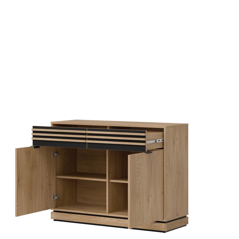 Kolekcja Ferro firmy Liveo Meble to połączenie surowego charakteru stylu industrialnego z funkcjonalnością dopasowaną do współczesnych wnętrz. Inspirowana loftowym minimalizmem, wyróżnia się prostą formą, wyrazistymi liniami i harmonijnym zestawieniem materiałów. Ciepłe odcienie naturalnego drewna zostały zestawione z elementami metalu w matowej czerni, co tworzy elegancki kontrast i nadaje meblom nowoczesny wygląd. Meble z kolekcji Ferro sprawdzą się zarówno w salonie, jadalni, jak i domowym biurze. Praktyczne rozwiązania, takie jak pojemne szafki, funkcjonalne regały czy solidne stoły, łączą estetykę z wygodą użytkowania. To propozycja dla osób, które cenią ponadczasowy design, wysoką jakość wykonania i wnętrza z charakterem.