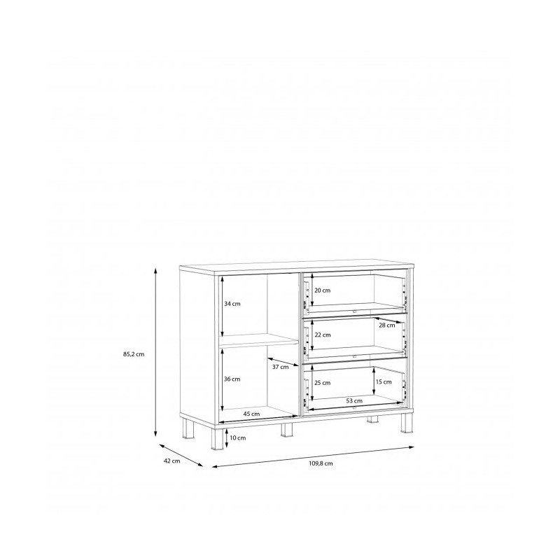 Komoda Hayato firmy Forte to pojemny mebel wykonany z wysokiej jakości płyty meblowej. Komoda przeznaczona jest do umeblowania pokoju dziennego i salonu.