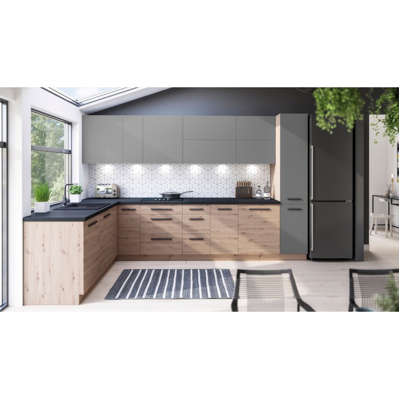 Meble kuchenne Langen firmy Gała Meble pozwalają na umeblowanie nowoczesnej kuchni. Korpusy kolekcji Langen wykonane są w kolorystyce dębu artisan, a kolor frontów można wybrać z trzech opcji kolorystycznych - dąb artisan, beige, grey. System Langen posiada wszystkie niezbędne elementy do umeblowania nowoczesnej kuchni. Zapraszamy do zapoznania się z meblami kolekcji Langen.