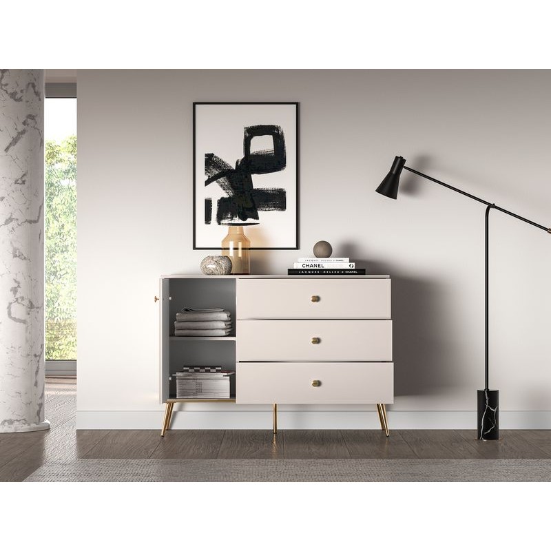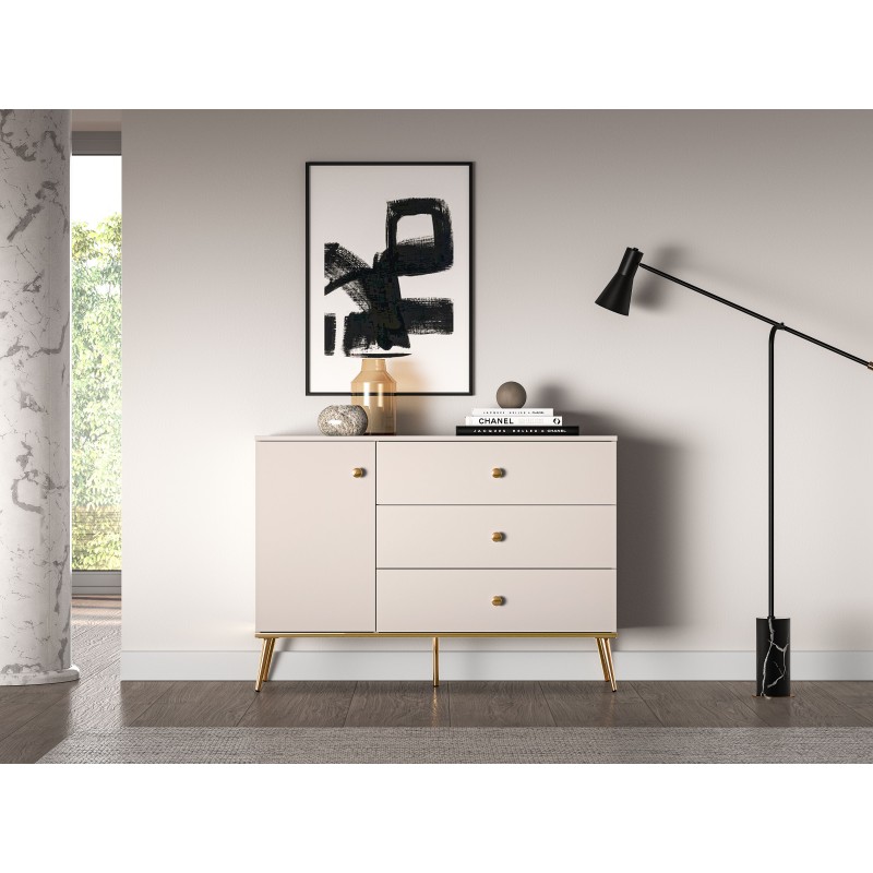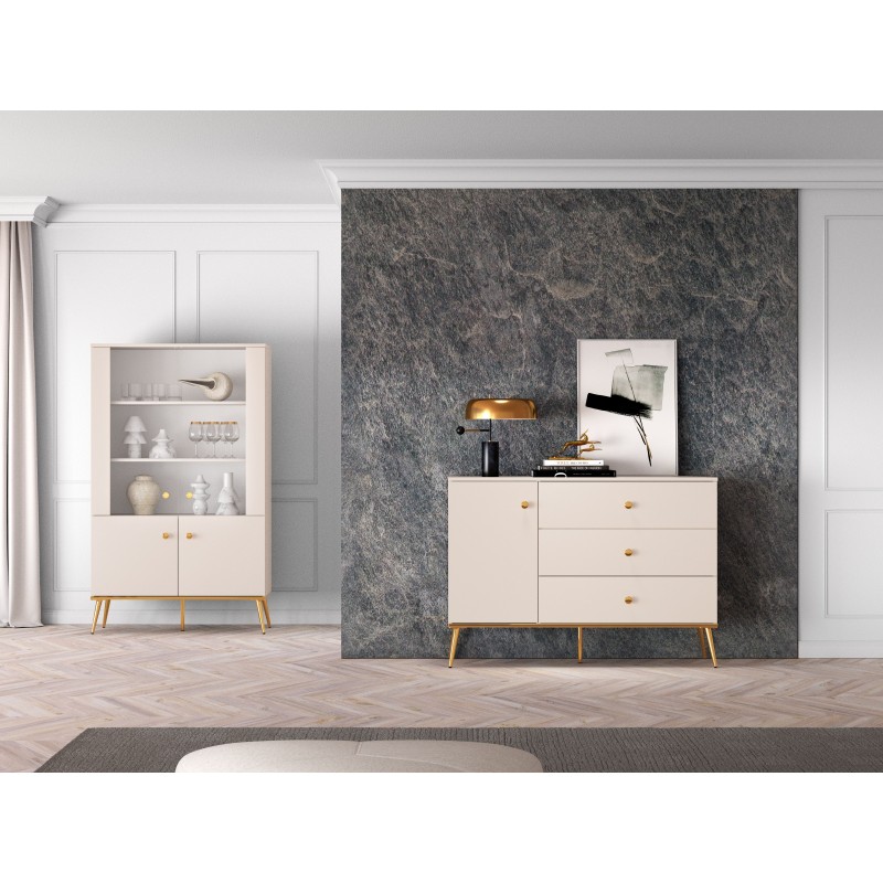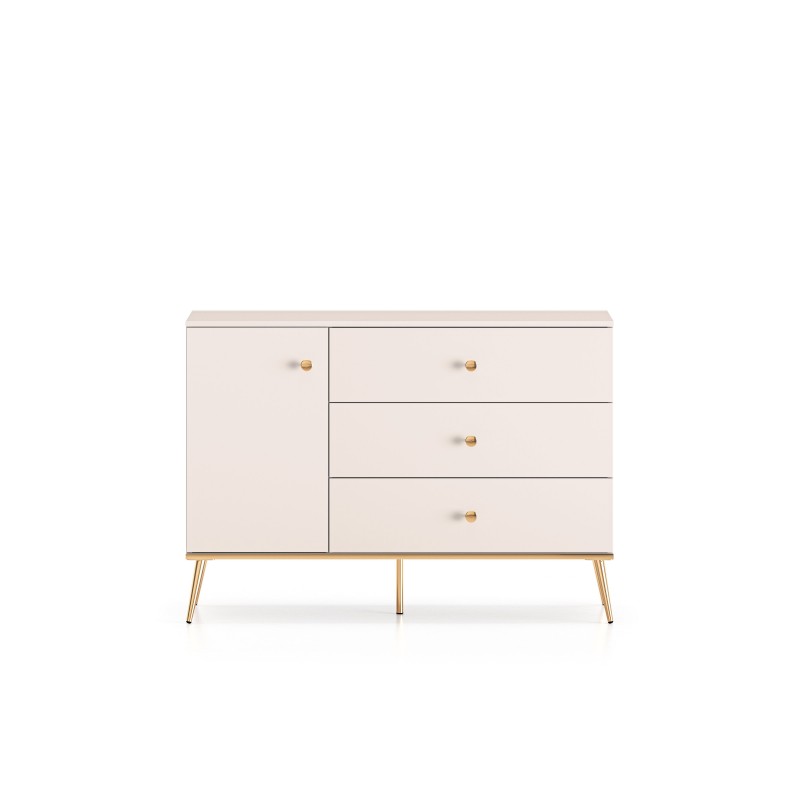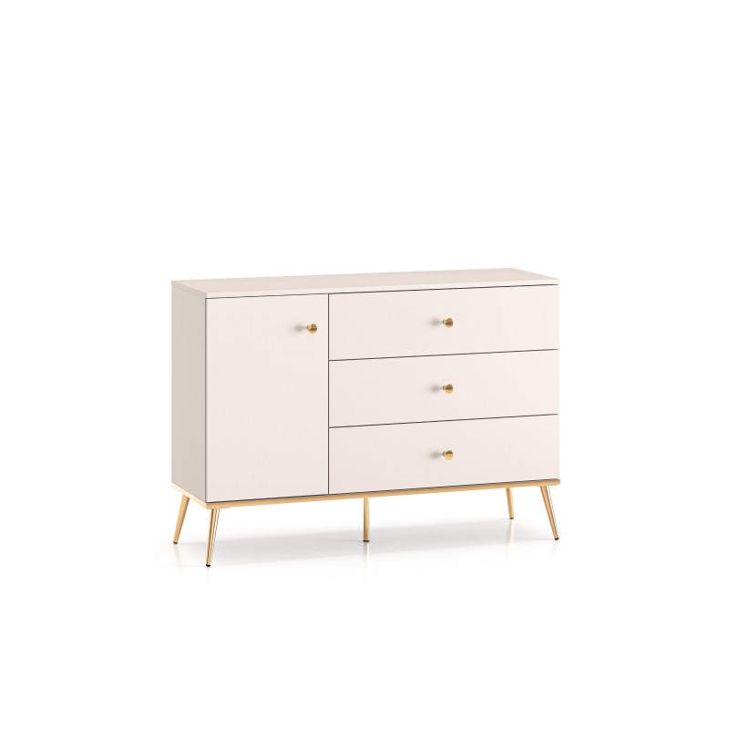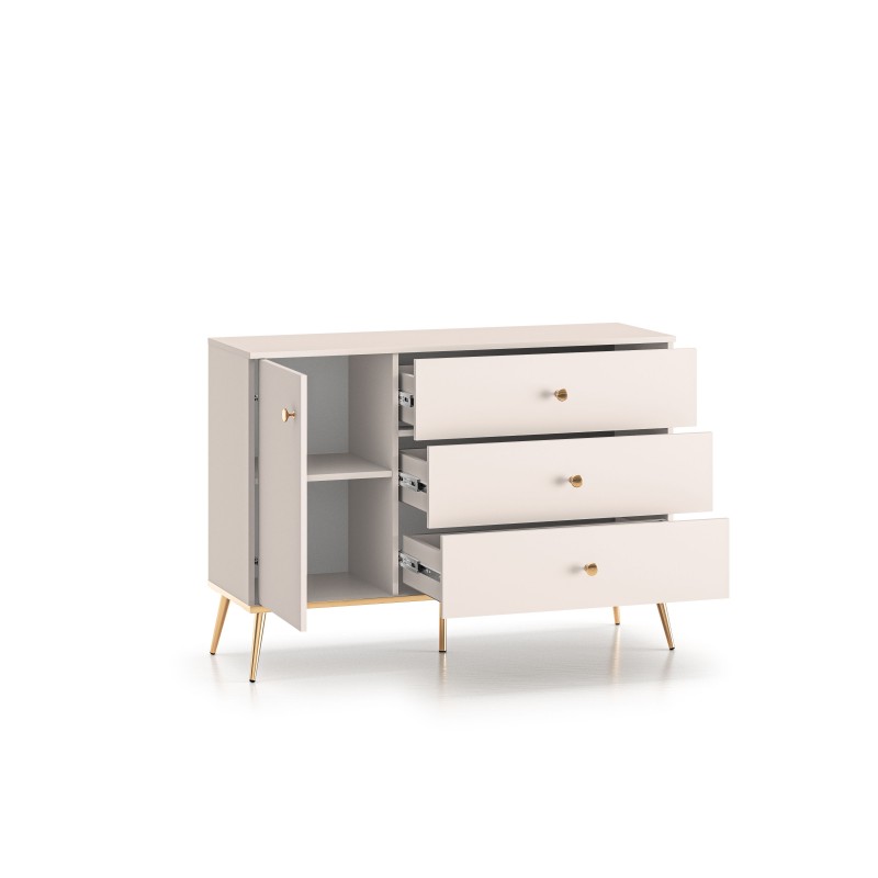 Kolekcja Selgin od ML Meble to wyjątkowa propozycja dla miłośników nowoczesnego wzornictwa i praktycznych rozwiązań. Łączy w sobie elegancję z funkcjonalnością, wyróżniając się subtelnym wykończeniem w odcieniach szarobeżowych lub kaszmirowych, które harmonizuje z ciepłymi, złotymi akcentami – od nóżek po uchwyty. Meble wykonano z wysokiej jakości płyty laminowanej, zabezpieczonej obrzeżem ABS, co gwarantuje trwałość i odporność na codzienne użytkowanie. W skład kolekcji wchodzą różnorodne elementy, takie jak stoliki kawowe, wiszące półki, szafki RTV oraz komody, które pozwalają na swobodną aranżację przestrzeni. Minimalistyczny styl Selgin sprawia, że doskonale wpisuje się w nowoczesne wnętrza, dodając im wyrafinowanego charakteru i przytulności.